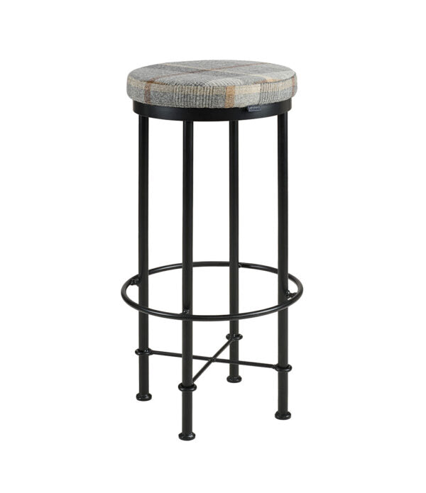 En barstol med sits i högkvalitativt skinn som ger en rustik känsla och ett tidlöst utseende. Sitsen är vadderad med mjuk skumfiber för överlägsen komfort, även vid längre sittningar. Barstolens ben är tillverkade av robust svart metall, vilket skapar en elegant kontrast mot skinnsitsen och tillför en modern touch till din inredning. Färg: Miles plaid grey