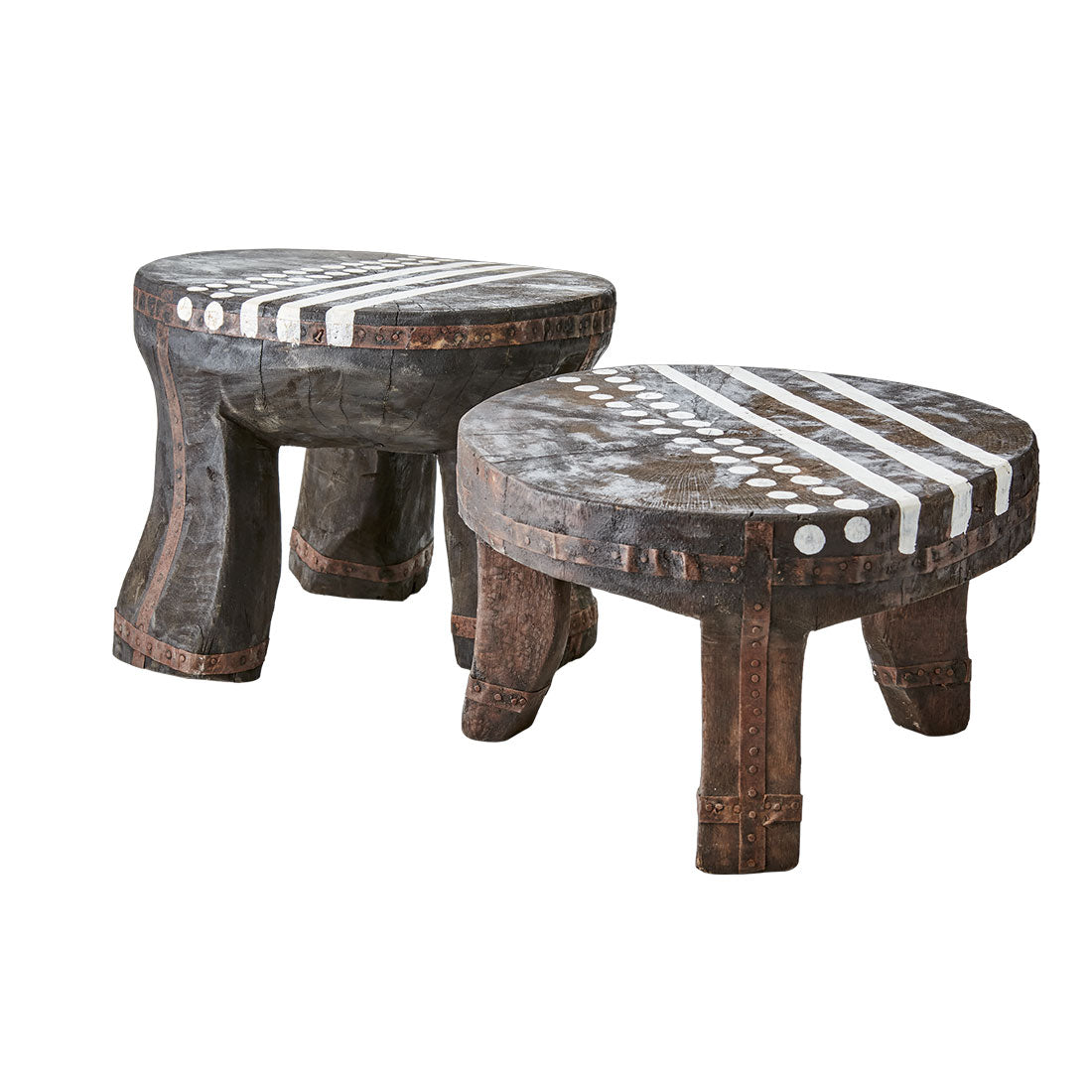 Tillverkad i återvunnet trä med järndetaljer är varje TREASURE Pall ett original, vars handmålade dekor gör den helt unik. Den rustika ytan och de naturliga färgskiftningarna bidrar till ett levande uttryck som bara blir vackrare med tiden. Kombinationen av bruna trätoner och svarta accenter skapar en harmonisk kontrast som gör att pallen passar lika bra i moderna hem som i mer lantliga miljöer.