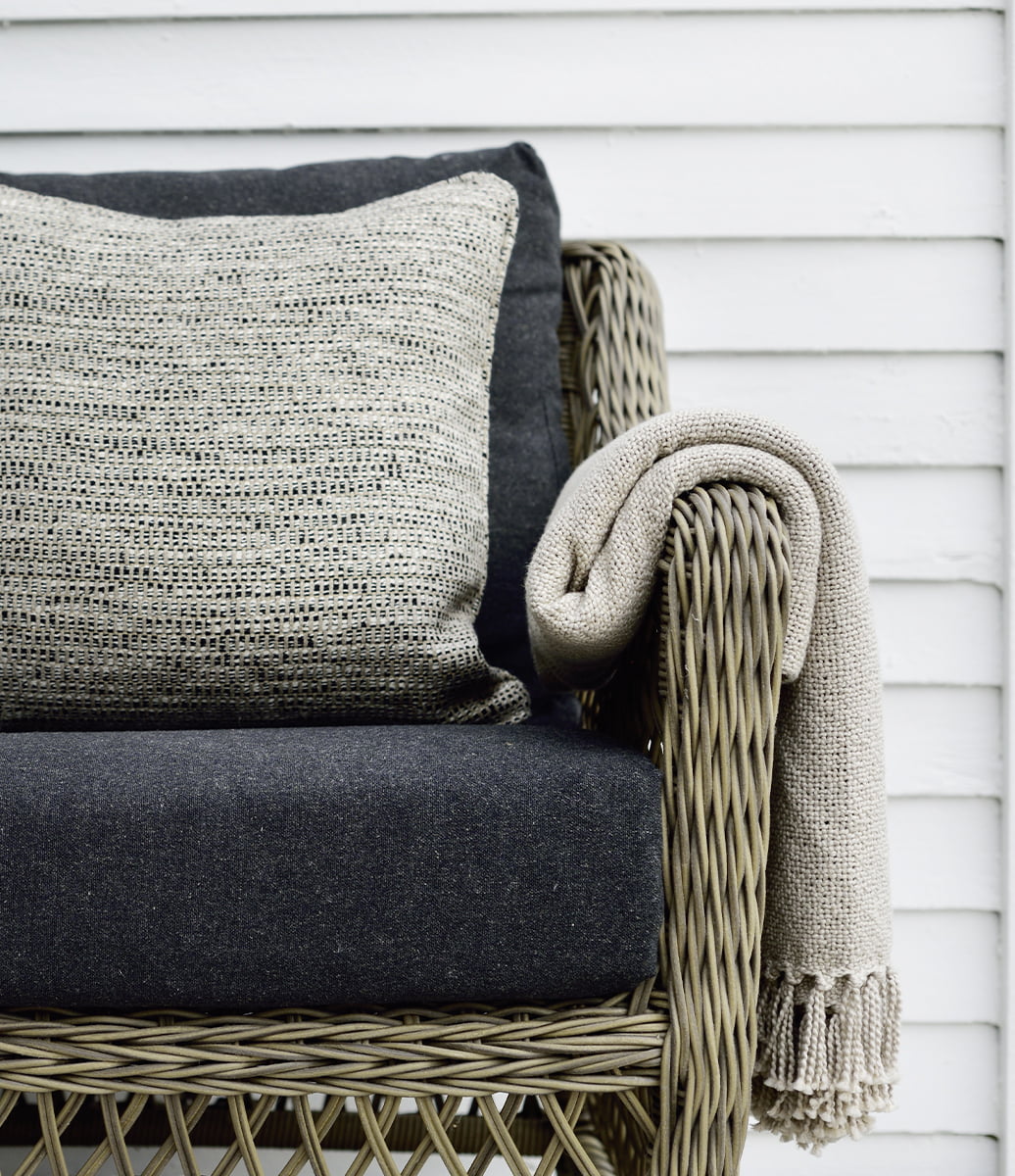 Marbella är en handflätad fåtölj i genomfärgad konstrotting av polyeten där den kraftiga stommen består av aluminium.