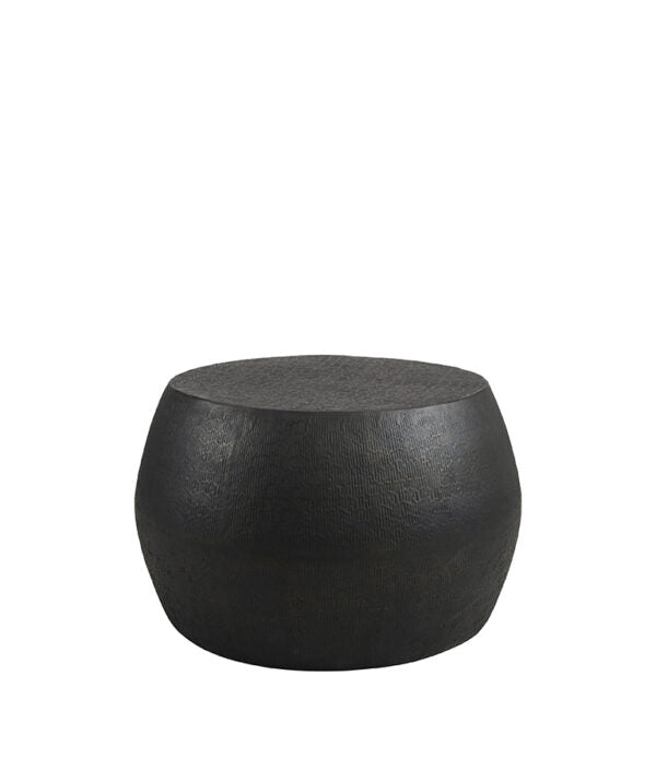 Ett elegant och mångsidigt runt sidobord i metall som passar perfekt i de flesta rum och inredningsstilar. Med en unikt texturerad yta och tidlös design är varje bord ett hantverk med sitt eget unika uttryck. Bordet fungerar lika bra som avlastningsbord, soffbord eller nattduksbord. Tillverkat i högkvalitativ metall med fokus på hållbarhet och stil är detta bord både praktiskt och dekorativt. Skapa en personlig atmosfär och låt det bli ett blickfång i ditt hem. Perfekt för dig som söker en kombination av funktionalitet och exklusiv design. Färg: Antique Black/Bronze Observera att varje möbel är unik och kan variera i struktur.