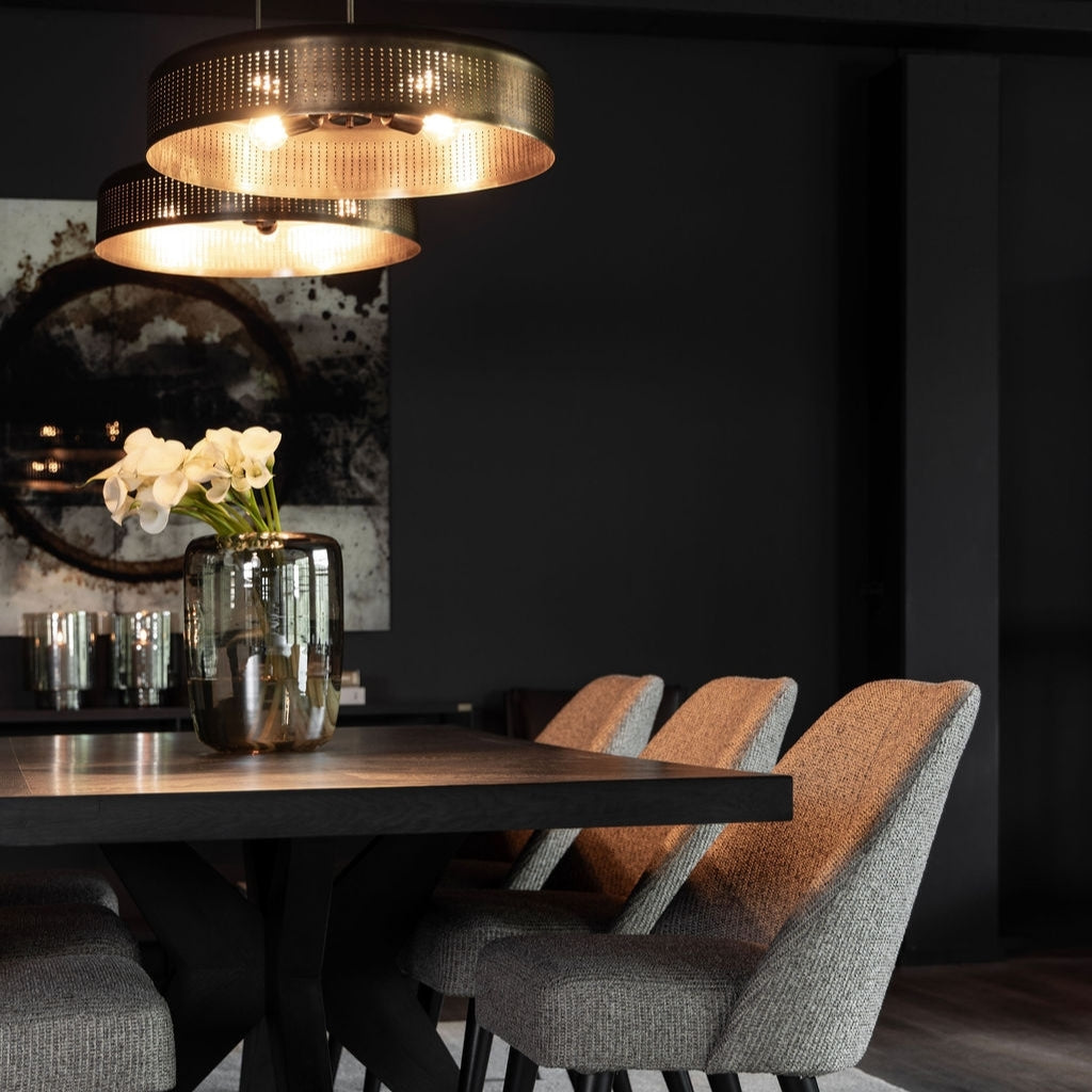 Den vackra borstade mässingstonen samt de svarta detaljerna ger en modern och exklusiv känsla som passar både klassiska och samtida hem. Låt denna iögonfallande taklampa bli rummets naturliga blickfång och skapa en inredning som imponerar!
